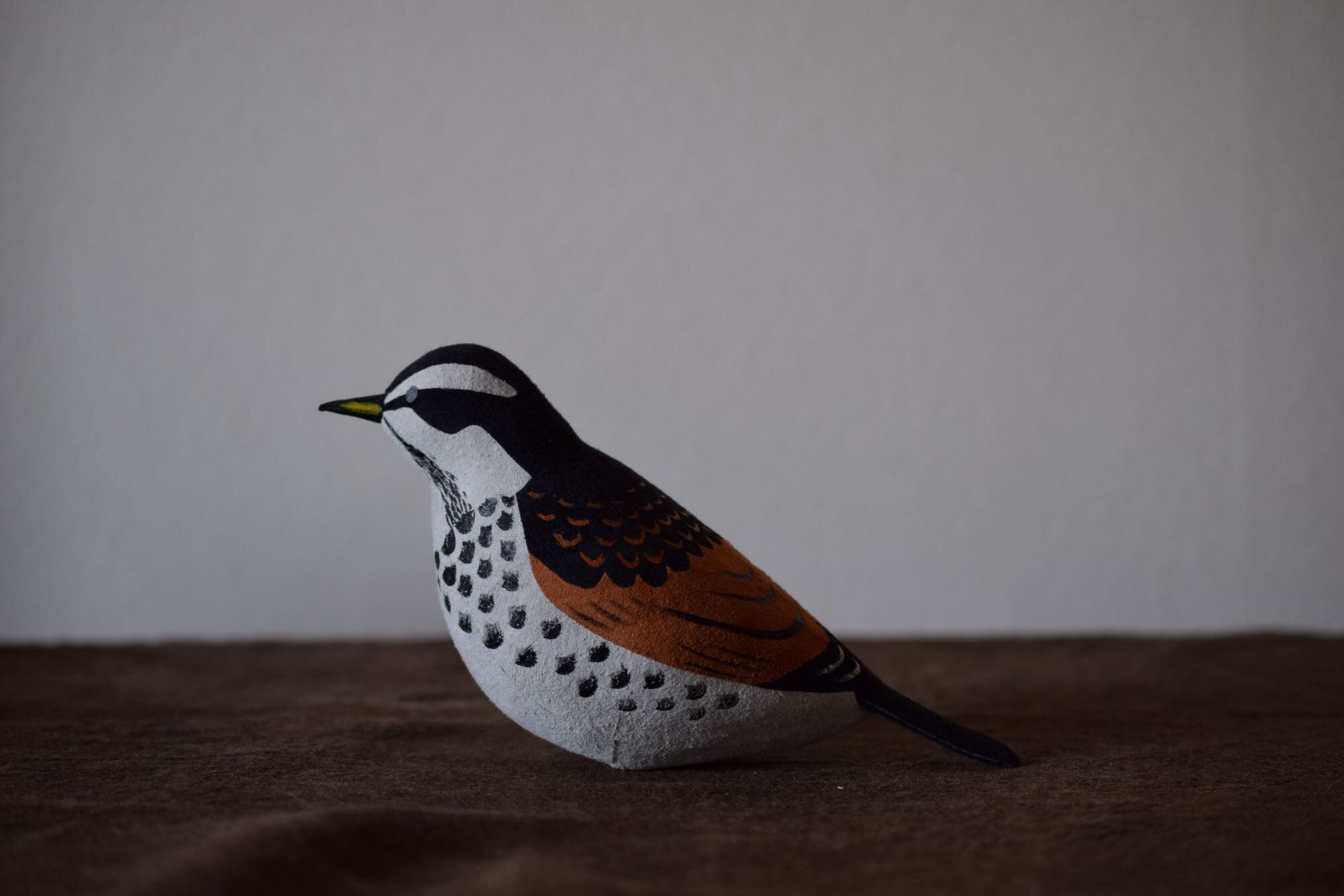 革絞りで作ったツグミのオブジェです。