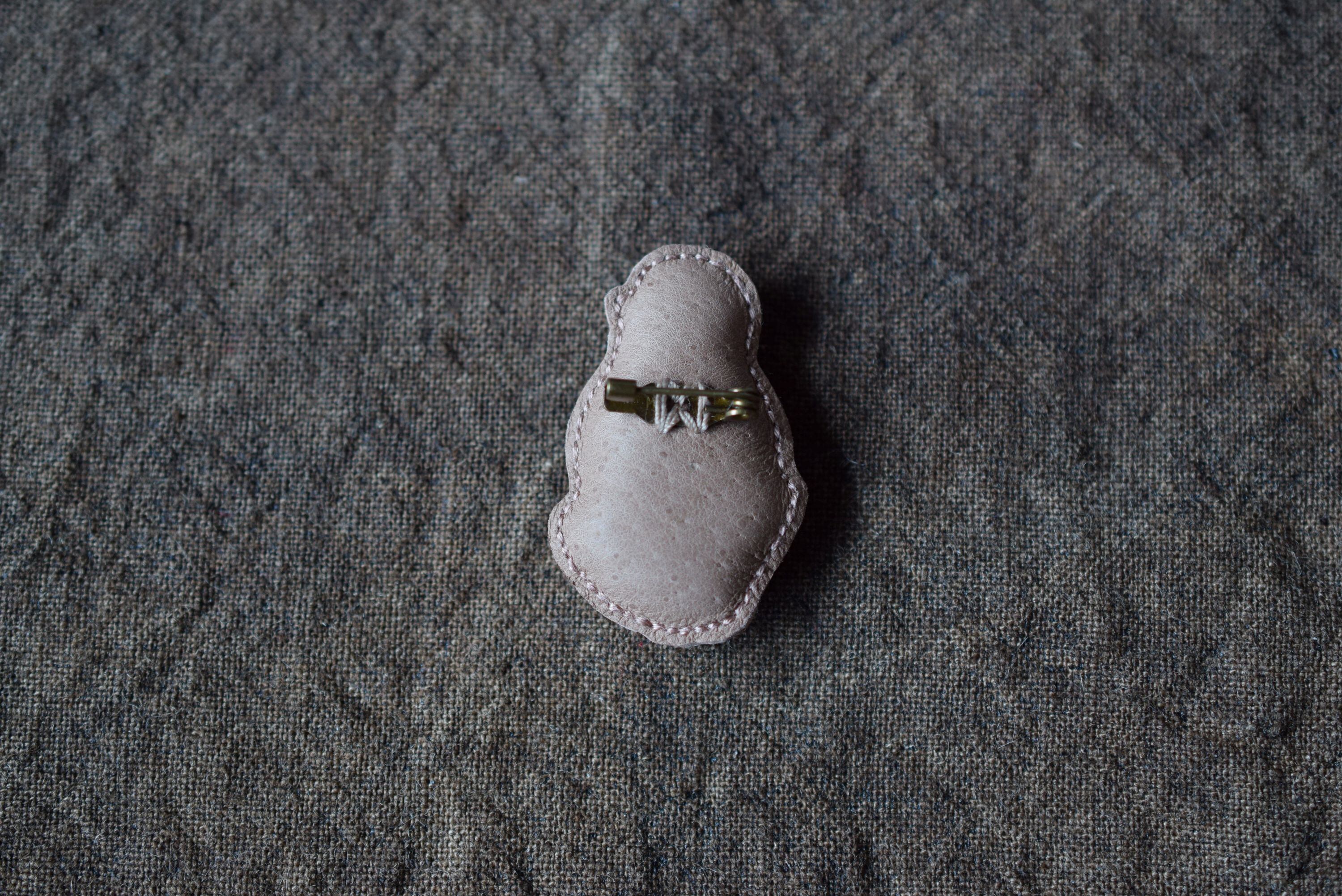 豚革に綿を詰めて周りをぐるりと手縫いした、サルのブローチです。