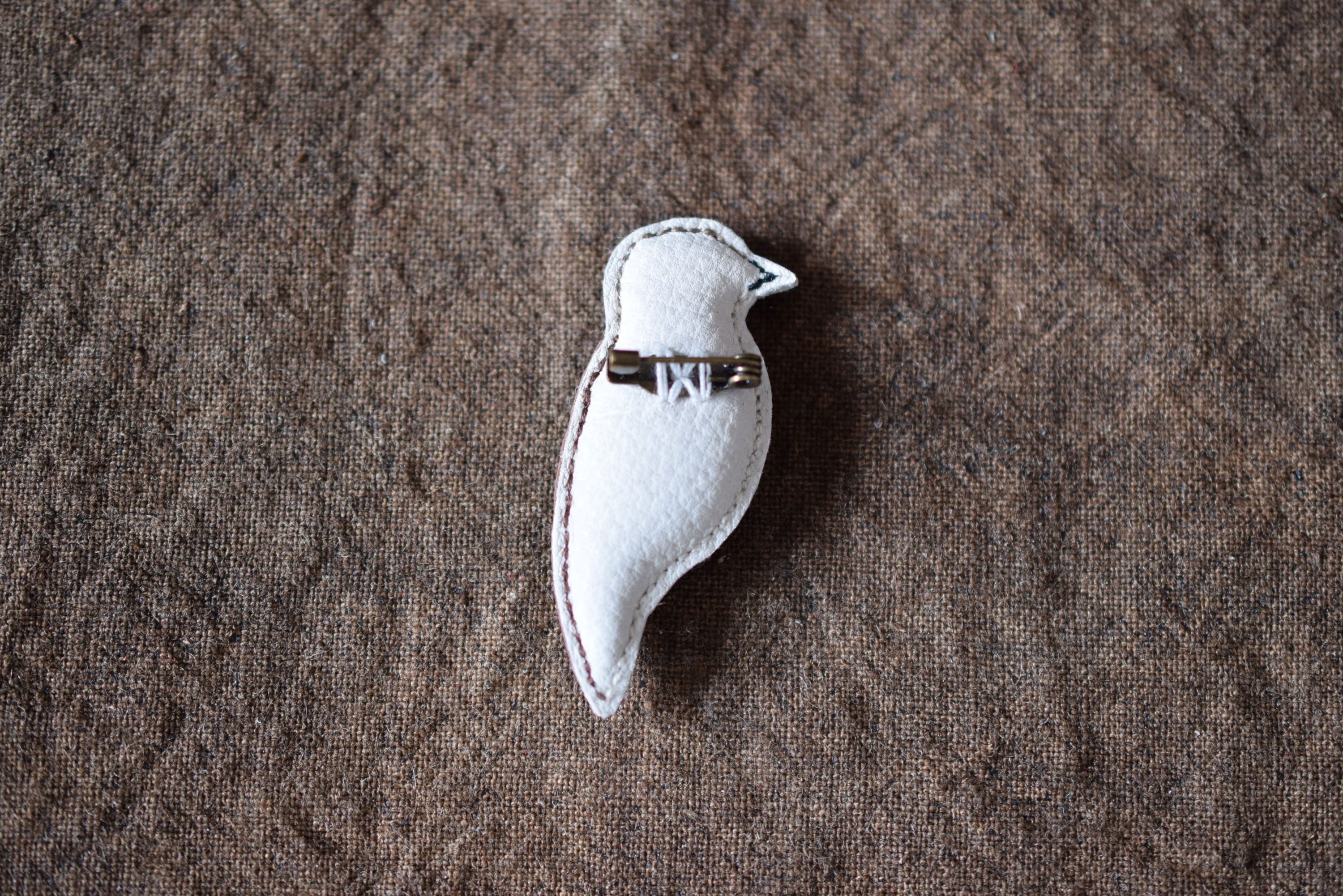革のブローチ コゲラ 試作