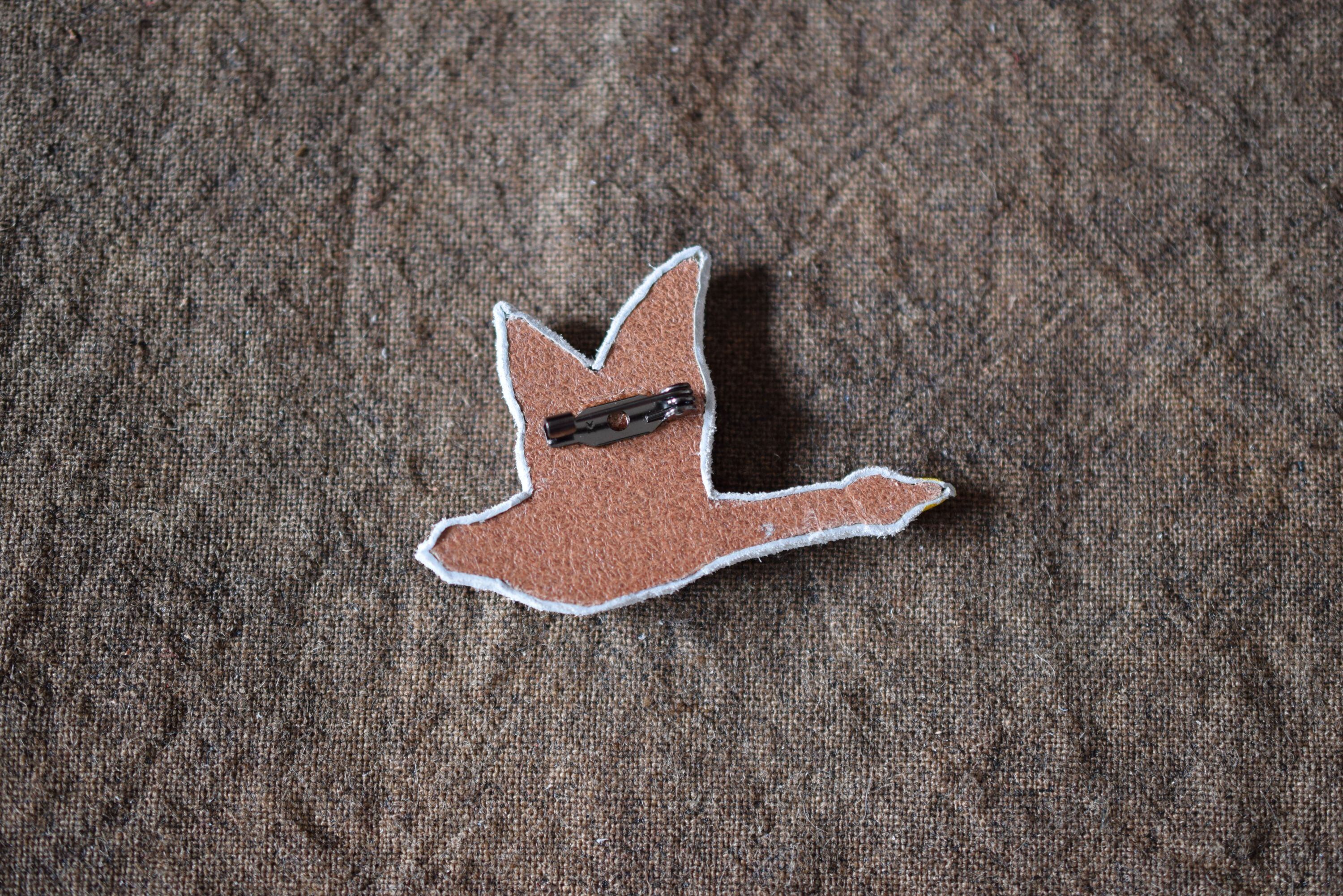 牛の床革を彫った上に豚革を貼って作った白鳥のブローチです。